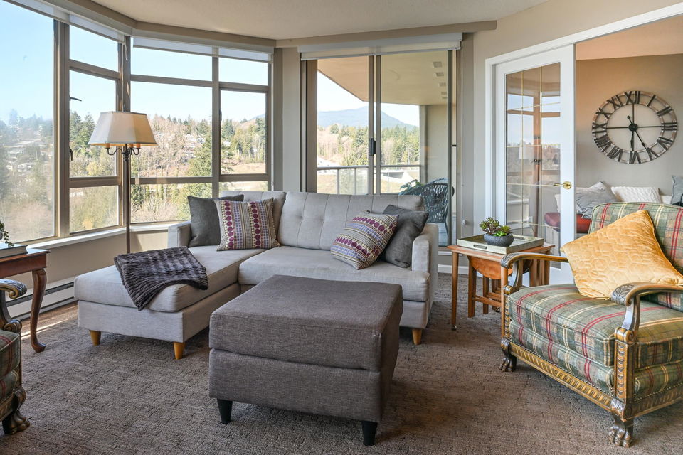 CARLETON AT THE CLUB – here’s your opportunity to move right in! Bright and welcoming 2 bedroom, 2 full bathroom home with amazing location and amenities. Freshly painted, excellent floor plan and large walk-in closet off of the primary bedroom. This home offers flexibility to use 2nd bedroom as home office or den. Located beside North Shore Winter Club and boasts beautifully maintained indoor pool, hot tub, sauna, gym, library, theater, meeting rooms, hobby room and guest suite. Proximity to parks, shopping and recreation allows walkability while also close to transit. Secured parking and storage locker included. City of Vancouver views and North Shore mountains. This is the home for you!