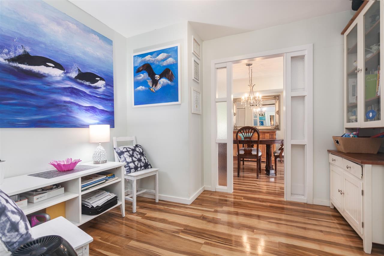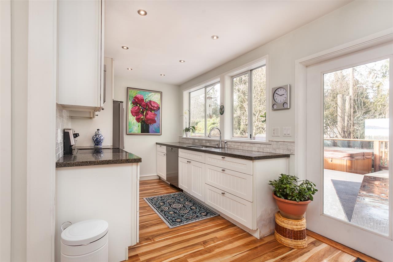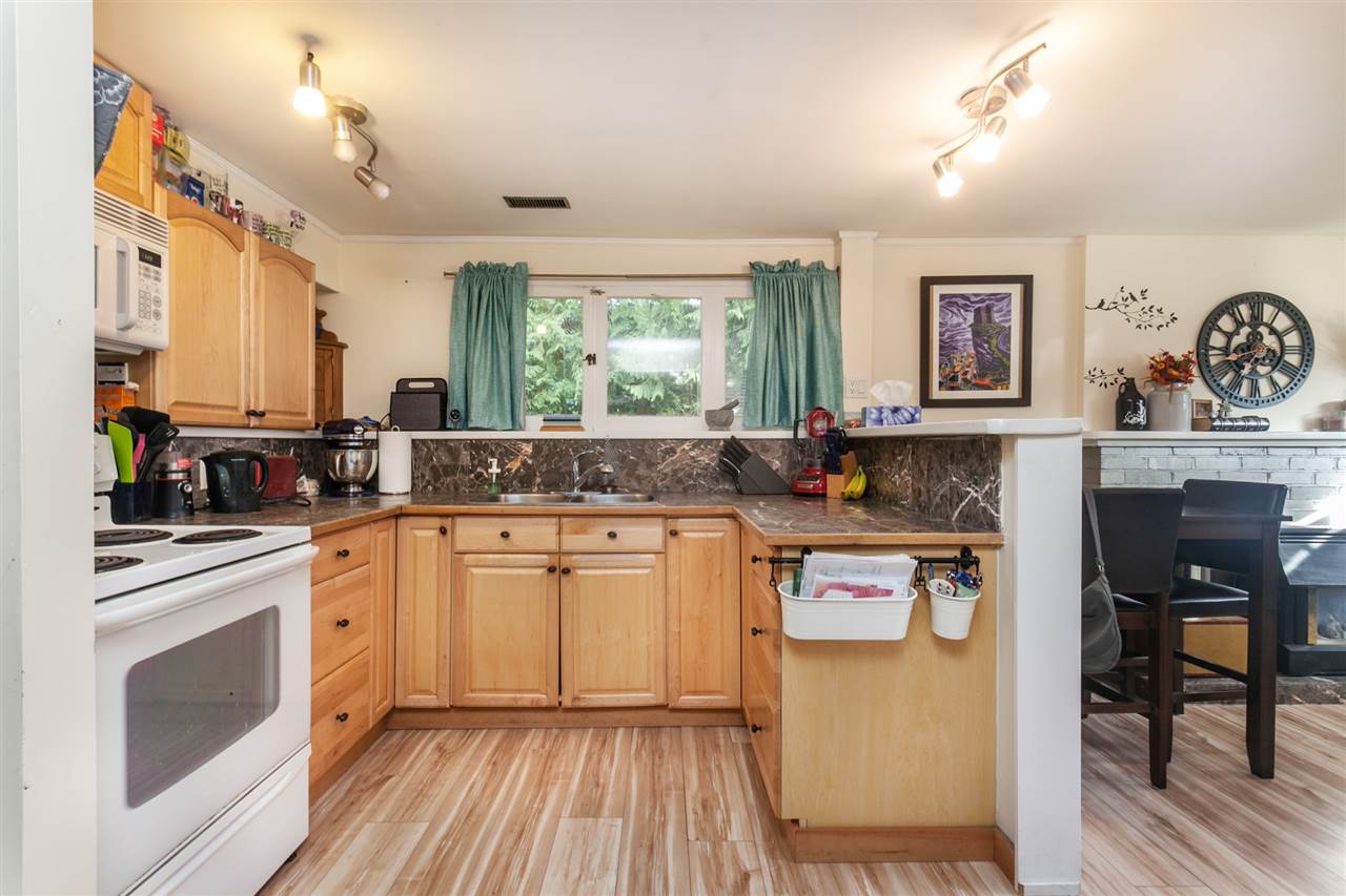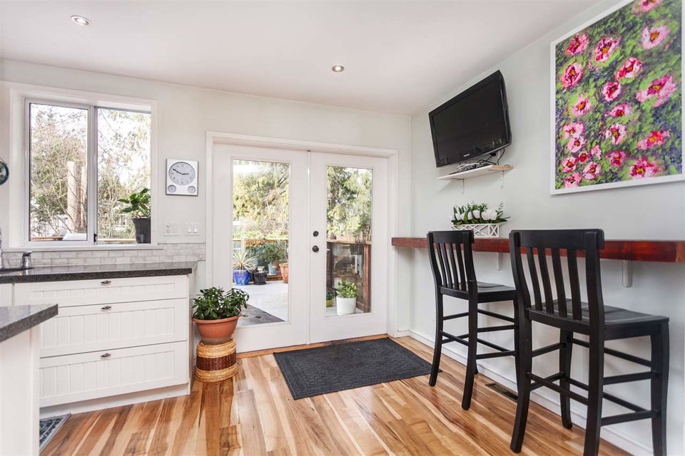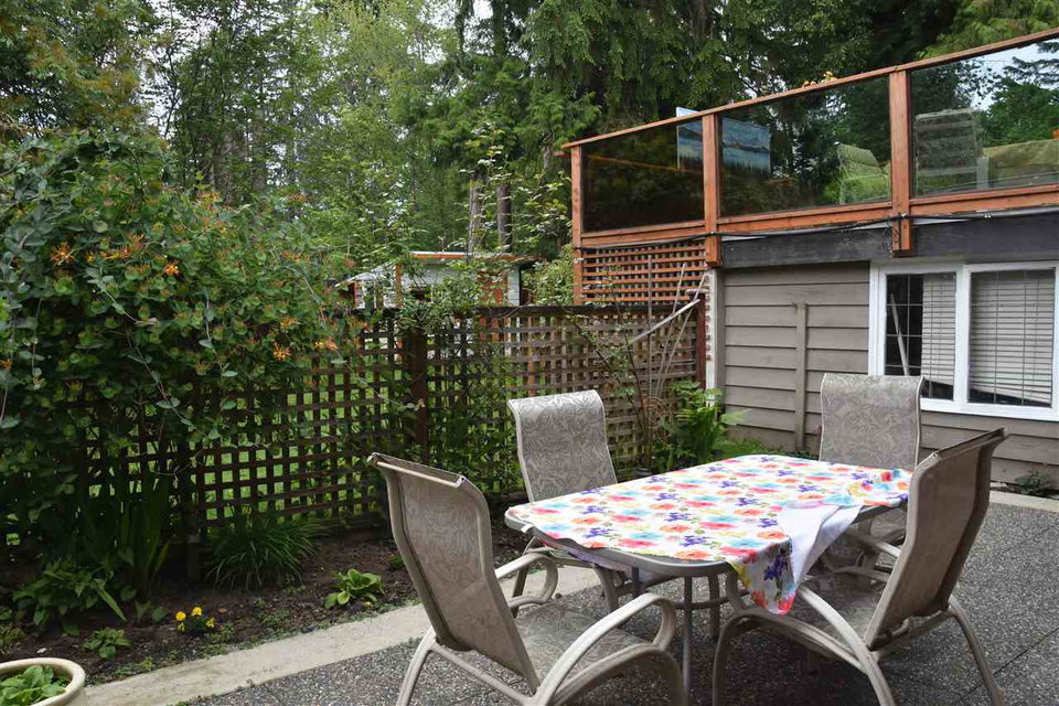 MOVE RIGHT INTO THIS CHARMING, 2 LEVEL FAMILY HOME, centrally located just steps from Lynn Valley Mall, Lynn Canyon Park and Ross Road Elementary. Large, flat, fenced private backyard, great for kids and pets, and a greenbelt next door! Sunny, bright south facing living room with gas fireplace. Open plan newer kitchen with eating area, and access to large deck with hot tub. Two bedrooms and a 3rd flex room, two bathrooms, laminate and hardwood flooring complete the main level. Lower level offers the option of a completely separate bright and spacious, self contained 2 bedroom suite. Newer hot water tank, roof and furnace. Easy walk to coffee shops, forest trails, and transit to the Lonsdale Quay and downtown.