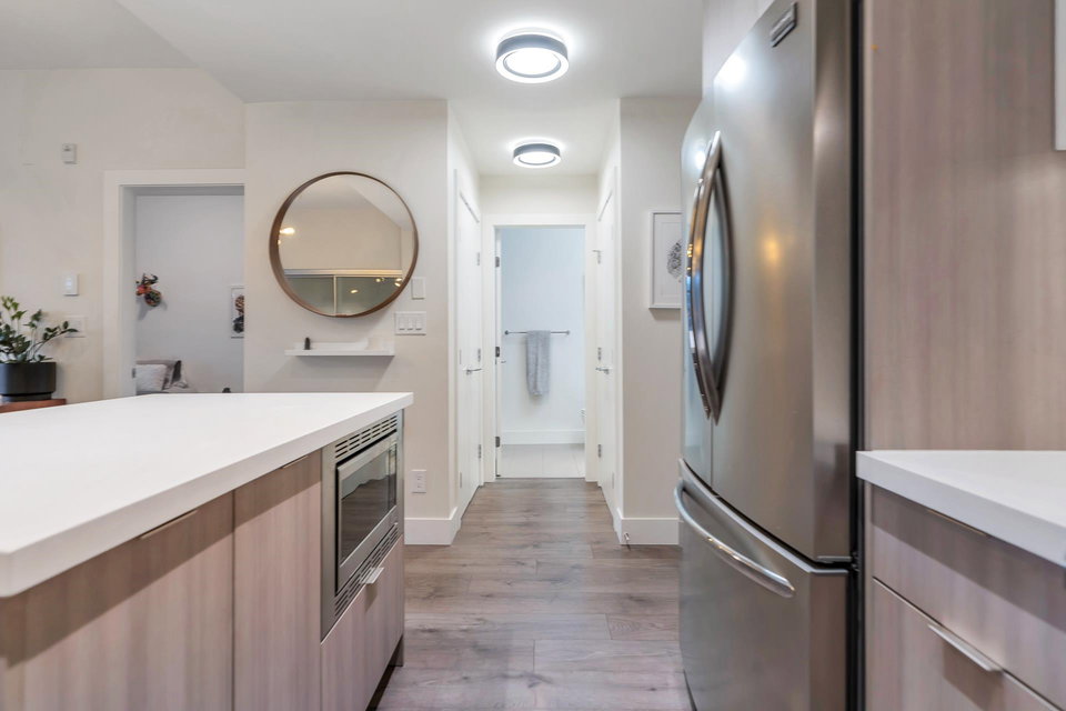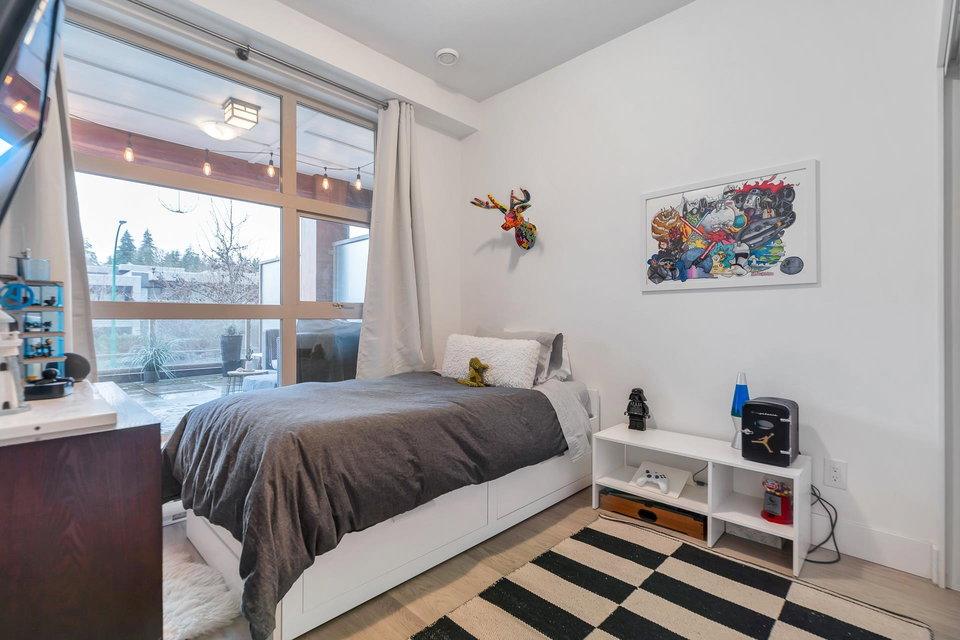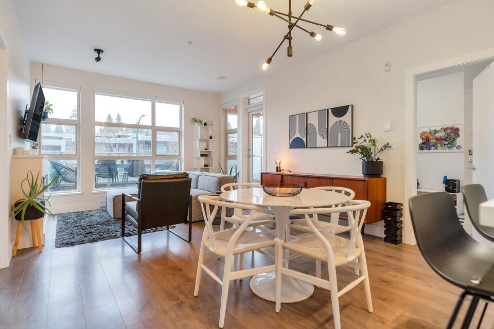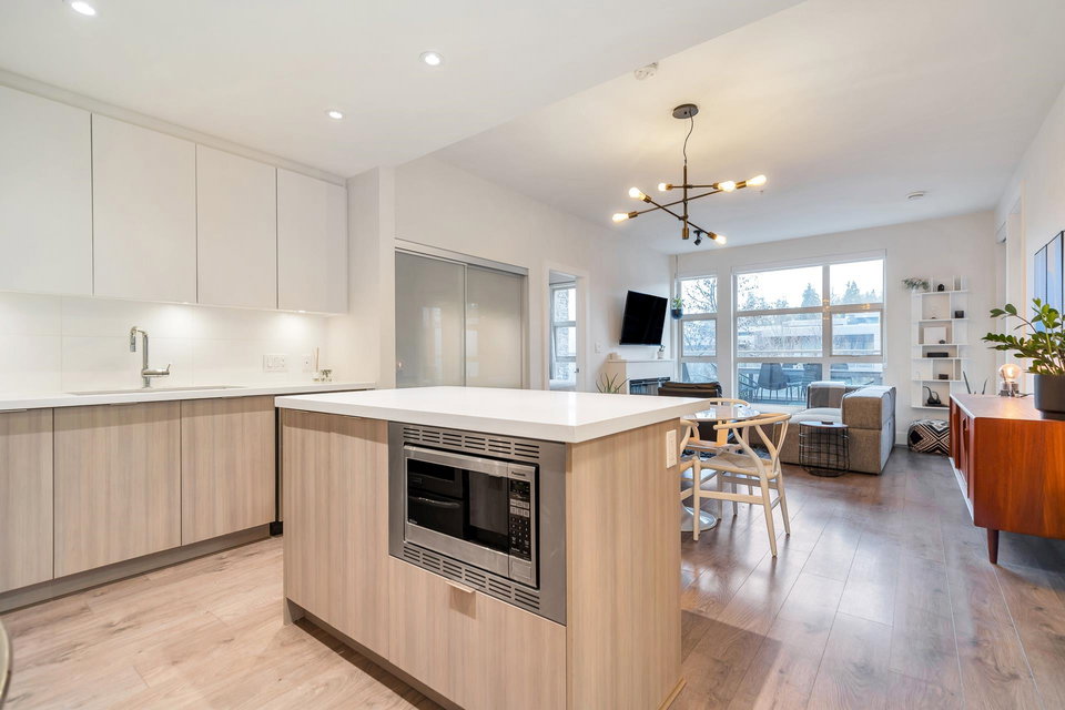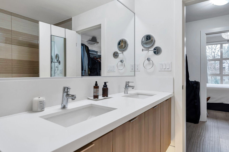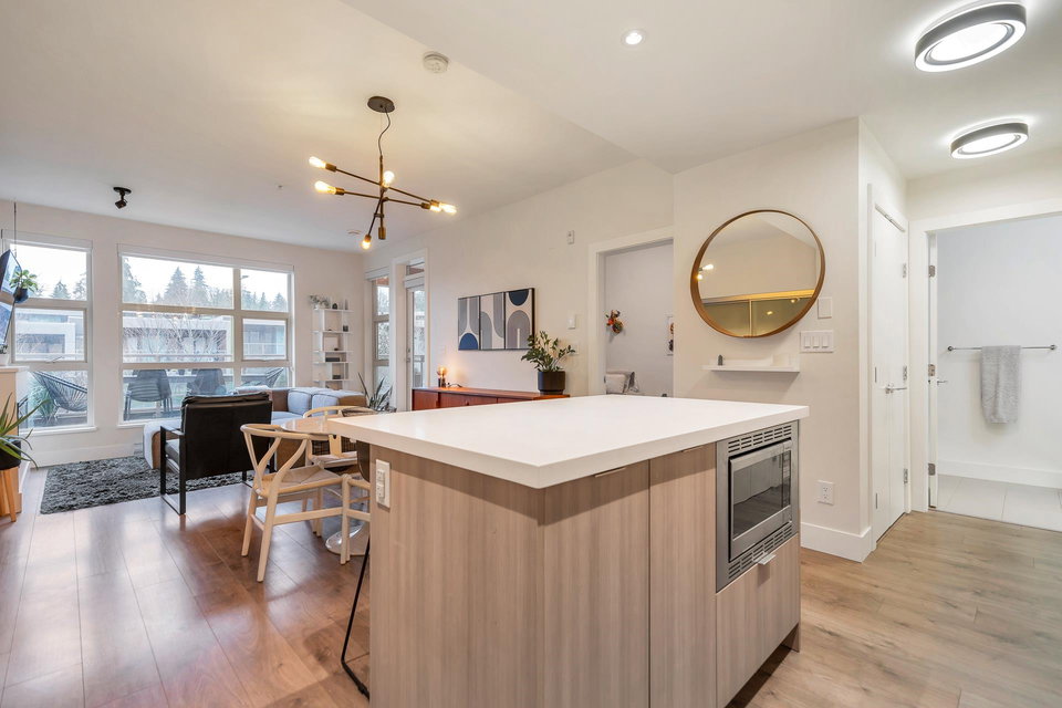 UNDERSTATED ELEGANCE AT ITS FINEST in this 2 Bedroom & 2 Bathroom in sought-after Destiny2 at Raven Woods! With its efficient layout no space is wasted, everything just fits! Nature abounds and illuminates the west-facing open floorplan that opens up onto a spacious entertainment sized patio with room to dine, relax and make memories with friends and family. Lots of extras with gorgeous laminate flooring, quartz countertop, fresh paint and designer fit and fixtures. Melt the world away in your deep soaker tub with separate shower and double sinks. Need more storage? 2 storage lockers for all of your seasonal items. 2 parking stalls and EV plug in just for you. Step outside your door to explore the outdoors or take a short walk to an abundance of amenities. Book your private showing!