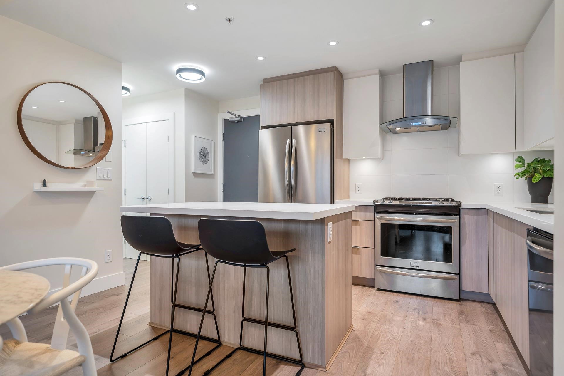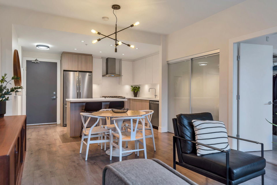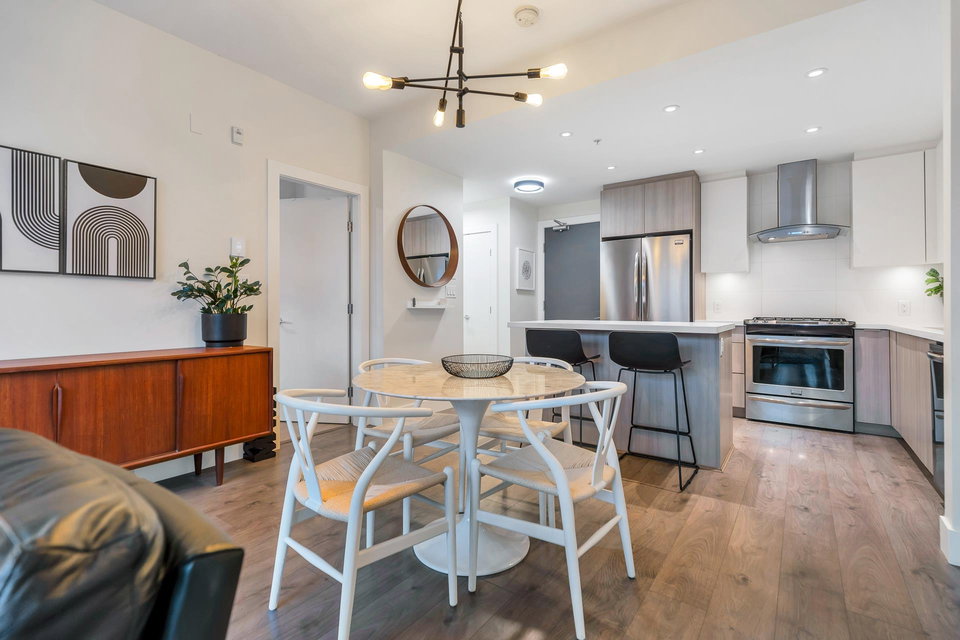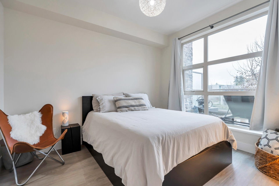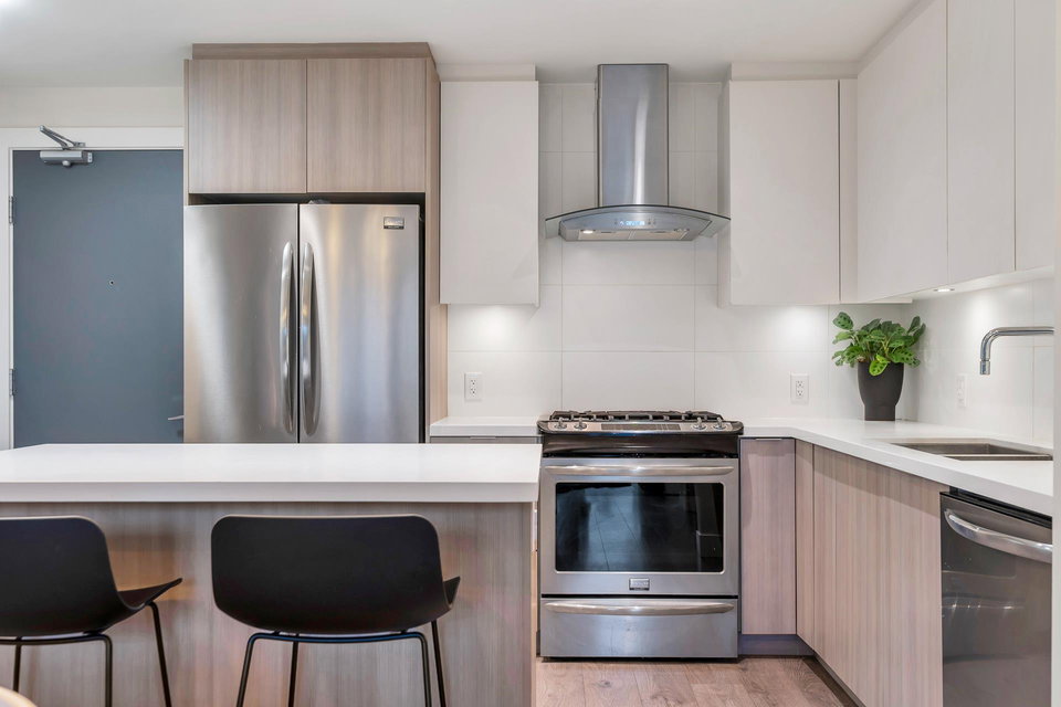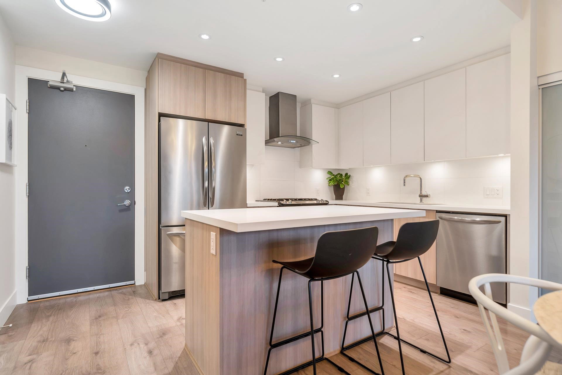 UNDERSTATED ELEGANCE AT ITS FINEST in this 2 Bedroom & 2 Bathroom in sought-after Destiny2 at Raven Woods! With its efficient layout no space is wasted, everything just fits! Nature abounds and illuminates the west-facing open floorplan that opens up onto a spacious entertainment sized patio with room to dine, relax and make memories with friends and family. Lots of extras with gorgeous laminate flooring, quartz countertop, fresh paint and designer fit and fixtures. Melt the world away in your deep soaker tub with separate shower and double sinks. Need more storage? 2 storage lockers for all of your seasonal items. 2 parking stalls and EV plug in just for you. Step outside your door to explore the outdoors or take a short walk to an abundance of amenities. Book your private showing!