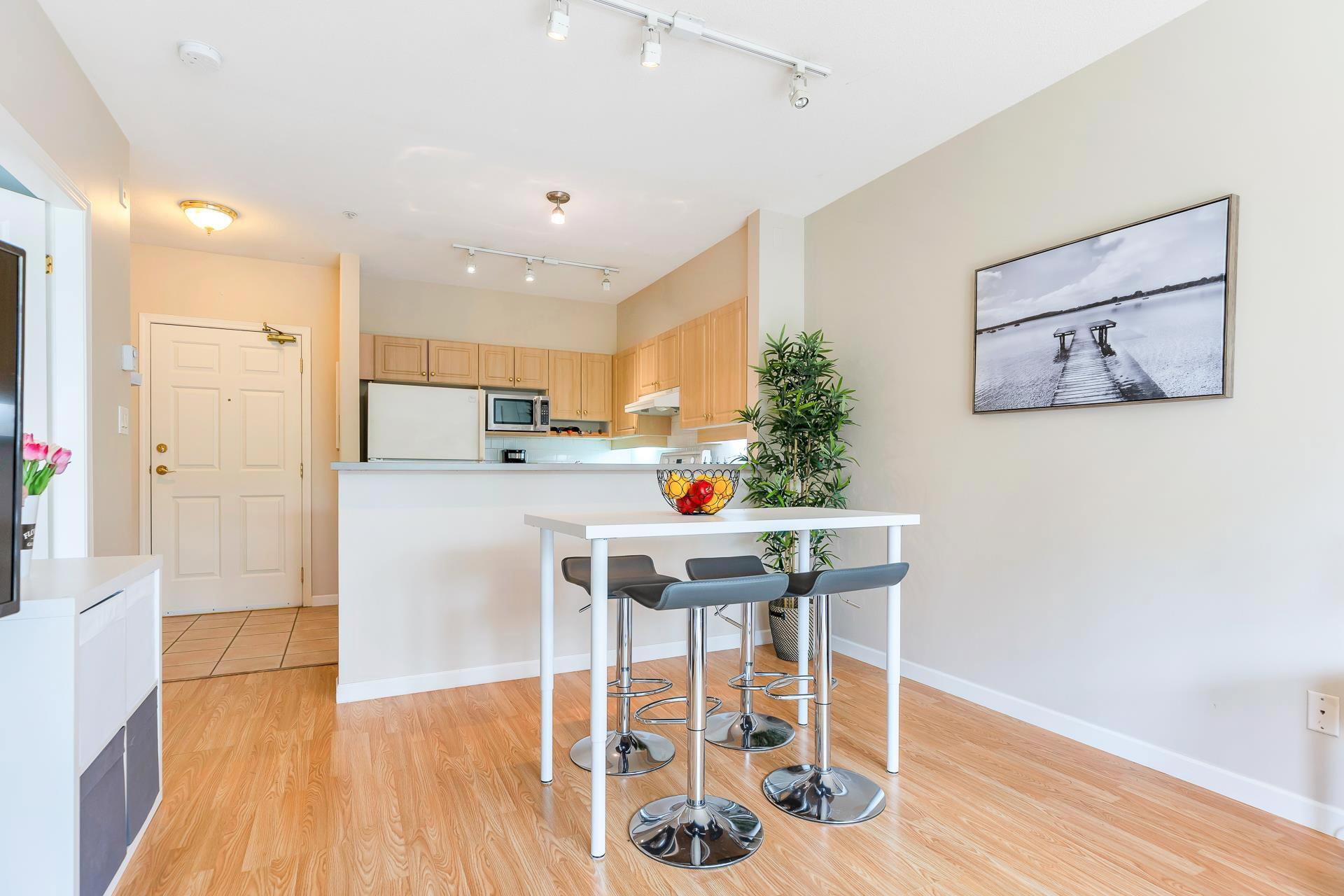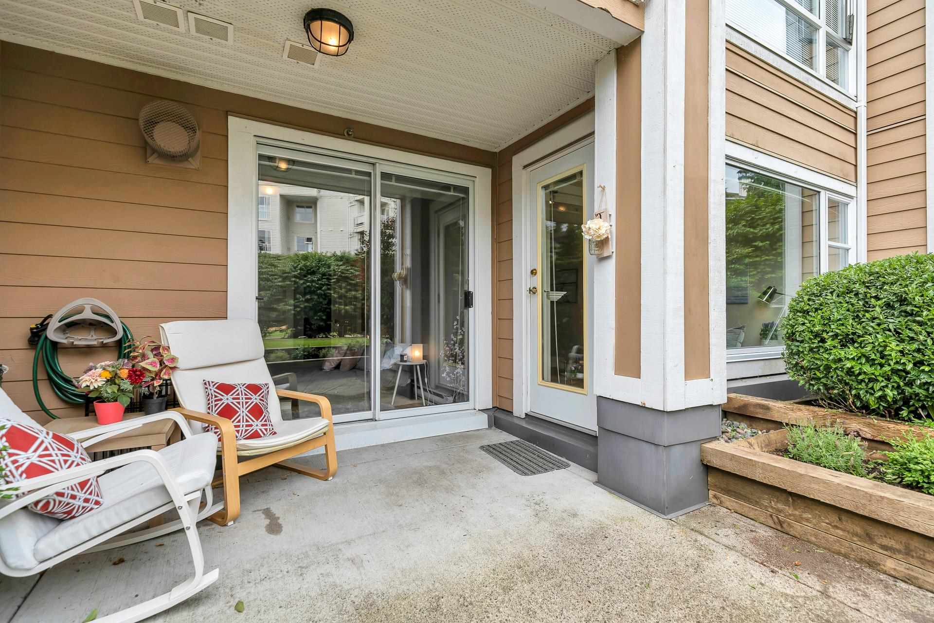 RARELY AVAILABLE IN DEERFIELD BY THE SEA AN EXQUISITE, GROUND LEVEL HOME with walk-out patio and private entrance are just a couple of spectacular features of this 1 bed, north facing home in sought after Raven Woods. Bring your BBQ and pets and take advantage of the outdoor space set in a serene emerald enclave . Clean and fresh feeling throughout this home with open kitchen and living space clad with laminate flooring and fresh designer paint. Gas fireplace is an added bonus to warm your toes on those cooler nights. 1 parking and 1 storage included and are mere steps away. Deerfield By The Sea offers the ability to rent, plenty of guest parking, private gym and is situated close to shopping options, recreation, close to hiking trails trails, skiing, Cates Park beaches and Deep Cove. Amazing investment or move right in!