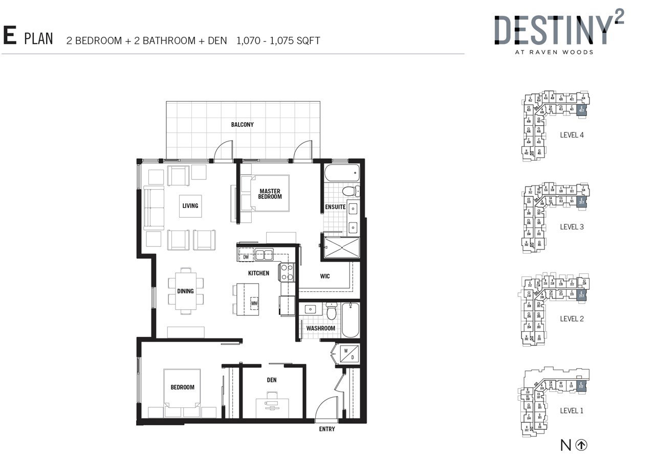 RARELY AVAILABLE sought after south facing, end unit home at the resort-like Destiny at Raven Woods 2. This spacious home boasts 2 bedrooms, 2 bathrooms and a den. You won’t be disappointed with this efficient layout with its generous sized south facing balcony with a gorgeous view of the reflecting pond! Large windows looking out to the water feature, excellent quality laminate floors, spa-like master ensuite, designer kitchen with gleaming quality appliances are just a few of the added pluses to this beautiful home! Call now for more information on how you can own this sought-after property!