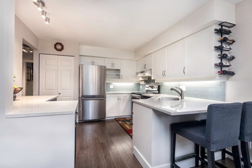 The perfect home in the perfect community. This strikingly modern 3 bedroom, 3 bathroom townhouse has been renovated to feel like a new home. It features a beautiful new open concept kitchen with white quartz counters & white shaker cabinets, new S/S appliances, bathrooms, floors, designer colours up and down using Benjamin Moore paint, soaring vaulted ceilings in the living room, a master bedroom with a 4-piece ensuite & an enormous two car attached garage with plenty of built in storage. The main floor walks out to a south facing backyard. Amazing location: walk to Parkgate Centre for shopping, community centre, library, golf, bus, schools, trails, ocean & more. Raven Woods is family & pet friendly with no GST or PST. Open Sat/Sun July 16/17 2-4