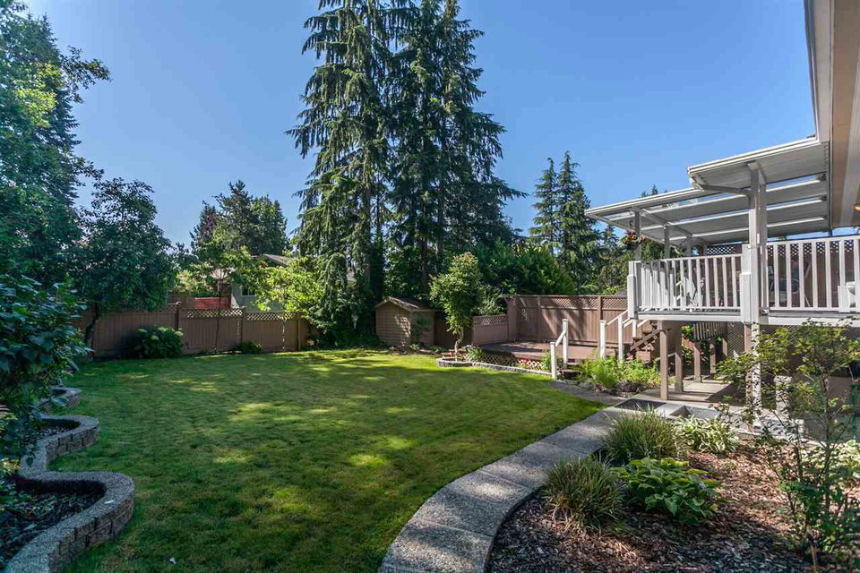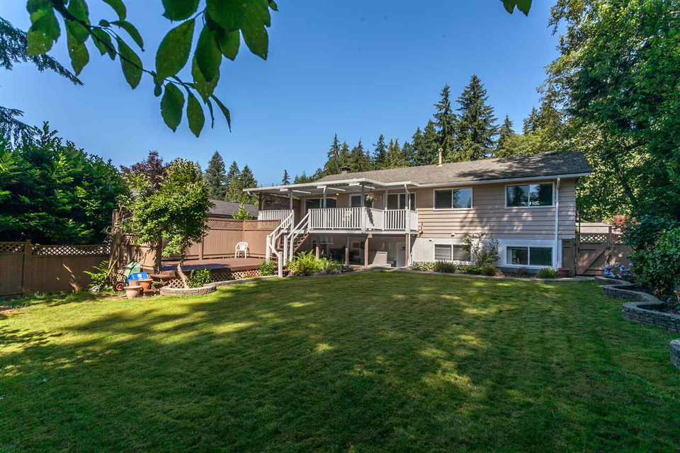 Adjacent to Blueridge Park, this immaculately maintained family home is an oasis in quiet Upper Blueridge. The sunny and private backyard is great for entertaining/relaxing with a greenbelt on the north side and extensive cedar decks, patios & sunshine on the South. This 4 bedroom 3 bathroom home has also seen numerous mechanical upgrades such as the roof (05), new high efficiency furnace, hot water tank and R50 insulation (09) and all new double pane windows. Other features include hardwood floors in bedrooms, storage under the deck, and a 2-car garage. Currently owner occupied, the downstairs includes a flexible plan for easy conversion to a studio or 1 bedroom suite. Fantastic family home, come see for yourself!