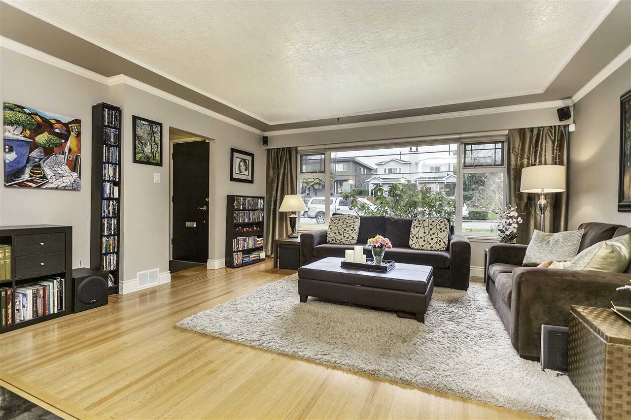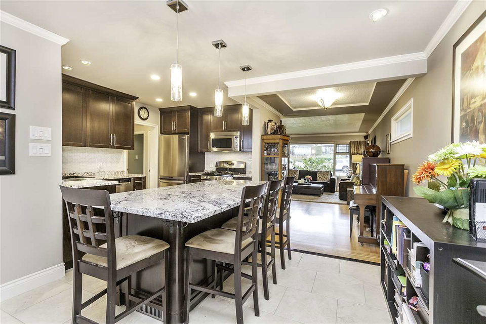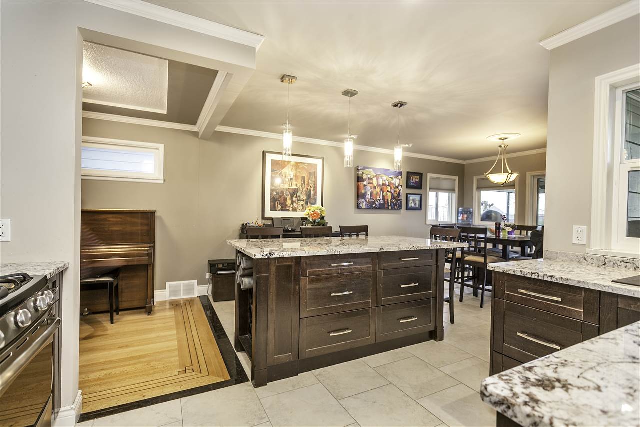 TASTEFULLY RENOVATED 5 BEDROOM, 2 BATHROOM, 2913 SF rancher with full basement on a 7015 SF lot. Upstairs features gleaming hardwood floors, a nice sized living living room with gas fireplace, a large entertaining sized kitchen with custom cabinetry, stainless steel appliances, and distinctive granite countertops. Kitchen and bathroom renovated in 2010. Durable interlocking metal roof installed 2006. Downstairs has an authorized, above ground, walk out, 2-3 bedroom in law suite with its own separate entrance and laundry added on in 1998. The property has a nice view of downtown Vancouver. It is currently zoned RT-1 while the OCP designates this property as a future R2 zoned lot allowing for 0.5 FSR and triplexes. OPEN SAT FEB 27 & SUN FEB 28 2PM – 4PM