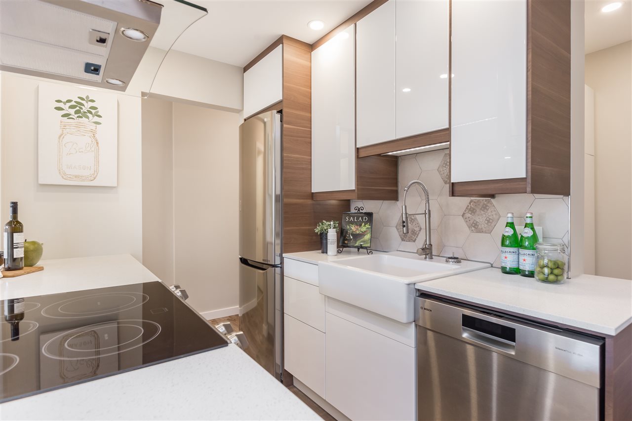 A GEM OF A CONDO! This modern home has been extensively renovated (right down to the wiring!) and ready to move into. Attn to detail is highly evident by the new, open kitchen with stainless steel appliances & quartz countertops. Beautiful rainfall shower in the newly appointment bathroom. Warm up with the new, living room gas fireplace & enjoy the over-sized, south-facing covered balcony. Situated on the quiet side of the building, bring your pets (some restrict) or take advantage of a superior rental unit investment. Ground level front access – no one below. 1 prking space & 1 storage locker. Direct access to bus & close to the Quay & all Lolo amenities. Can’t beat this like-new condo (new electrical, laminate flooring, lighting, appliances, tiling, bathroom fixtures) PLS CALL FOR VIEWING APPT