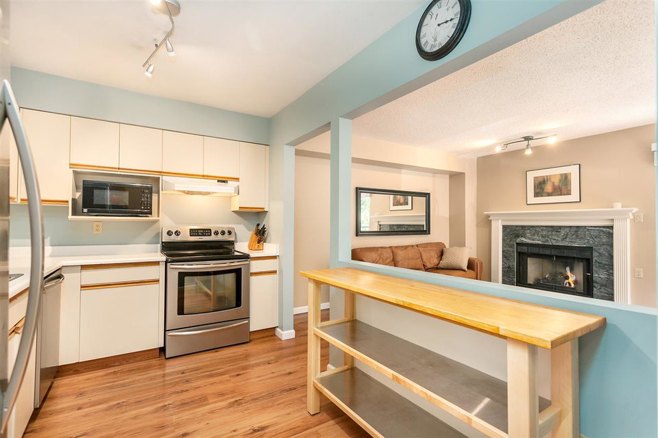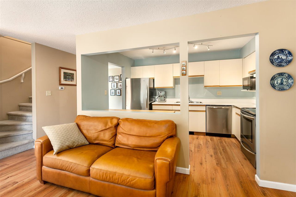 PRIME SOUTH FACING END UNIT on the edge of Indian River Park in updated Highgate Terrace! The development has been substantially upgraded over the last several years w/new balcony railings (2012), new exterior paint & gutters (2014) & new roofs (2015) resulting in great street appeal. This 3 level, 3 bedroom, 2.5 bathroom townhome is wider than many units in the complex w/extra windows & light & a full recreation room downstairs w/plumbing roughed in for an additional bathroom. It features updated S/S appliances, laminate flooring on the main, a one car garage, a large fenced patio area with garden & direct access to Indian River Park & Dorothy Lynas Elementary School, only a short walk to Parkgate Centre. FAMILY FRIENDLY!OPEN SAT/SUN 2-4