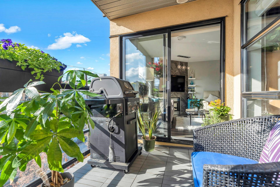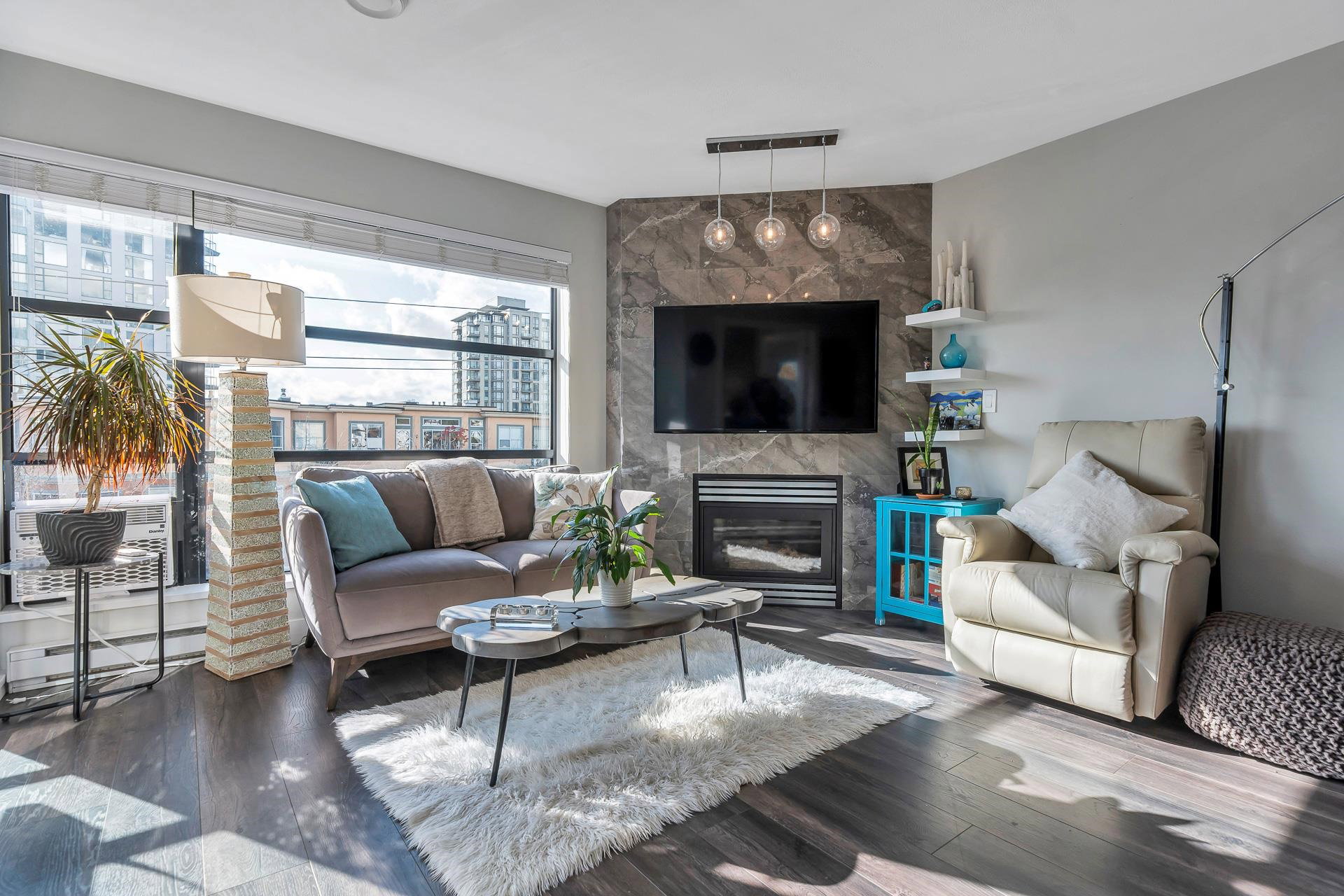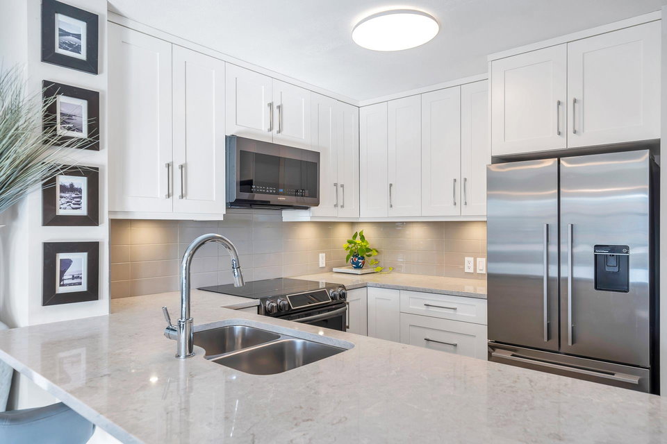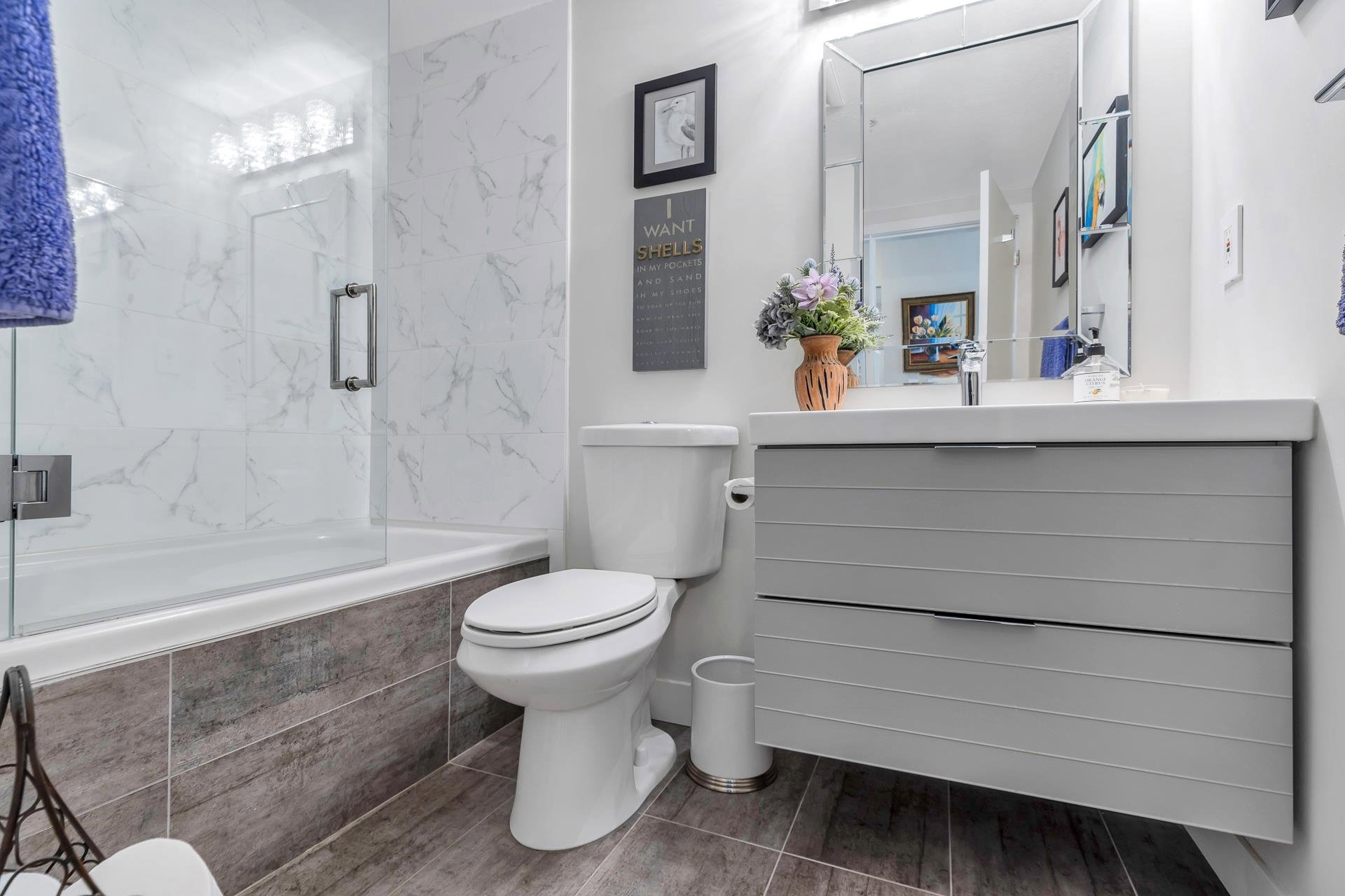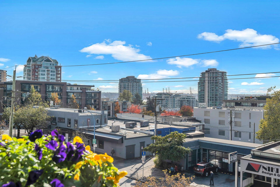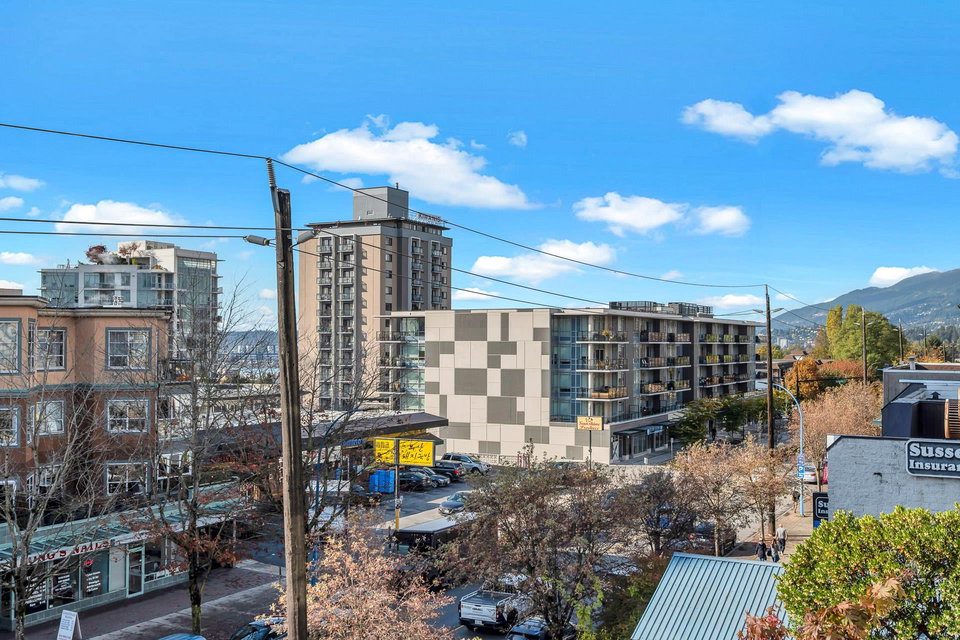 MODERN, BRIGHT AND SPACIOUS LOWER LONSDALE HOME! Move right in! All the space you need is right here in this pleasing and tastefully renovated 2 bedroom, 2 full bathroom + den home. Entertain your guests in the fresh and modern kitchen with waterfall quartz countertop and stainless steel appliances. Bathrooms are beautifully tiled with rainfall shower heads. Cozy up with your family and pets by your gas fireplace in the welcoming open living plan. Enjoy the sunshine with the southern exposure of this home. Centrally located with easy access to Seabus, restaurants, shopping, recreation all within walking distance to name a few benefits of Lower Lonsdale living. This is the home you have been waiting for!