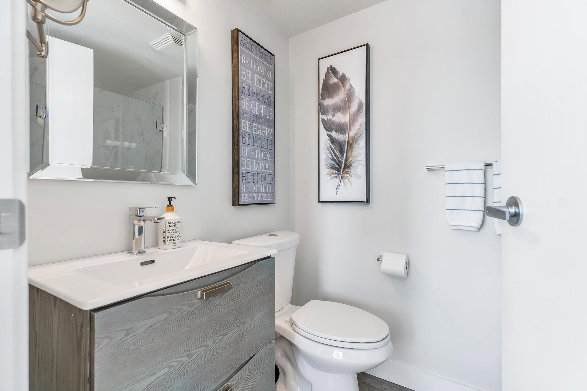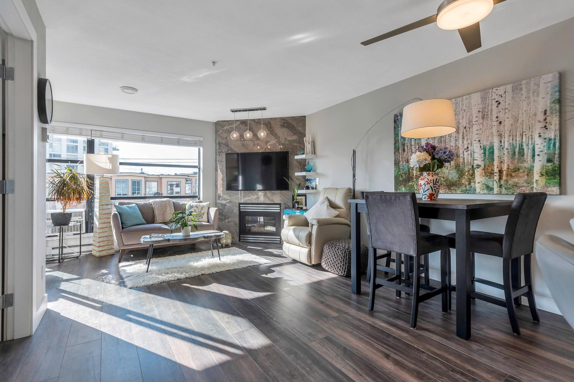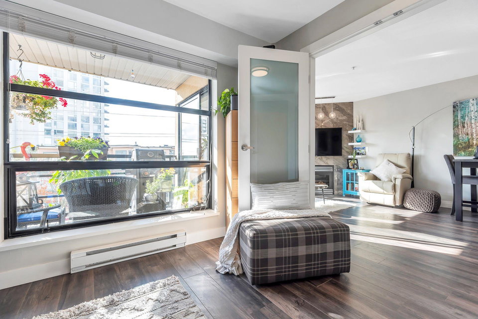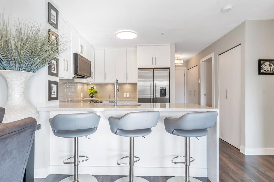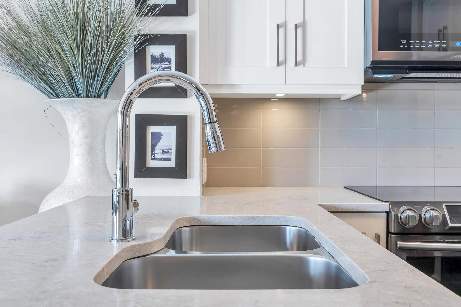 MODERN, BRIGHT AND SPACIOUS LOWER LONSDALE HOME! Move right in! All the space you need is right here in this pleasing and tastefully renovated 2 bedroom, 2 full bathroom + den home. Entertain your guests in the fresh and modern kitchen with waterfall quartz countertop and stainless steel appliances. Bathrooms are beautifully tiled with rainfall shower heads. Cozy up with your family and pets by your gas fireplace in the welcoming open living plan. Enjoy the sunshine with the southern exposure of this home. Centrally located with easy access to Seabus, restaurants, shopping, recreation all within walking distance to name a few benefits of Lower Lonsdale living. This is the home you have been waiting for!