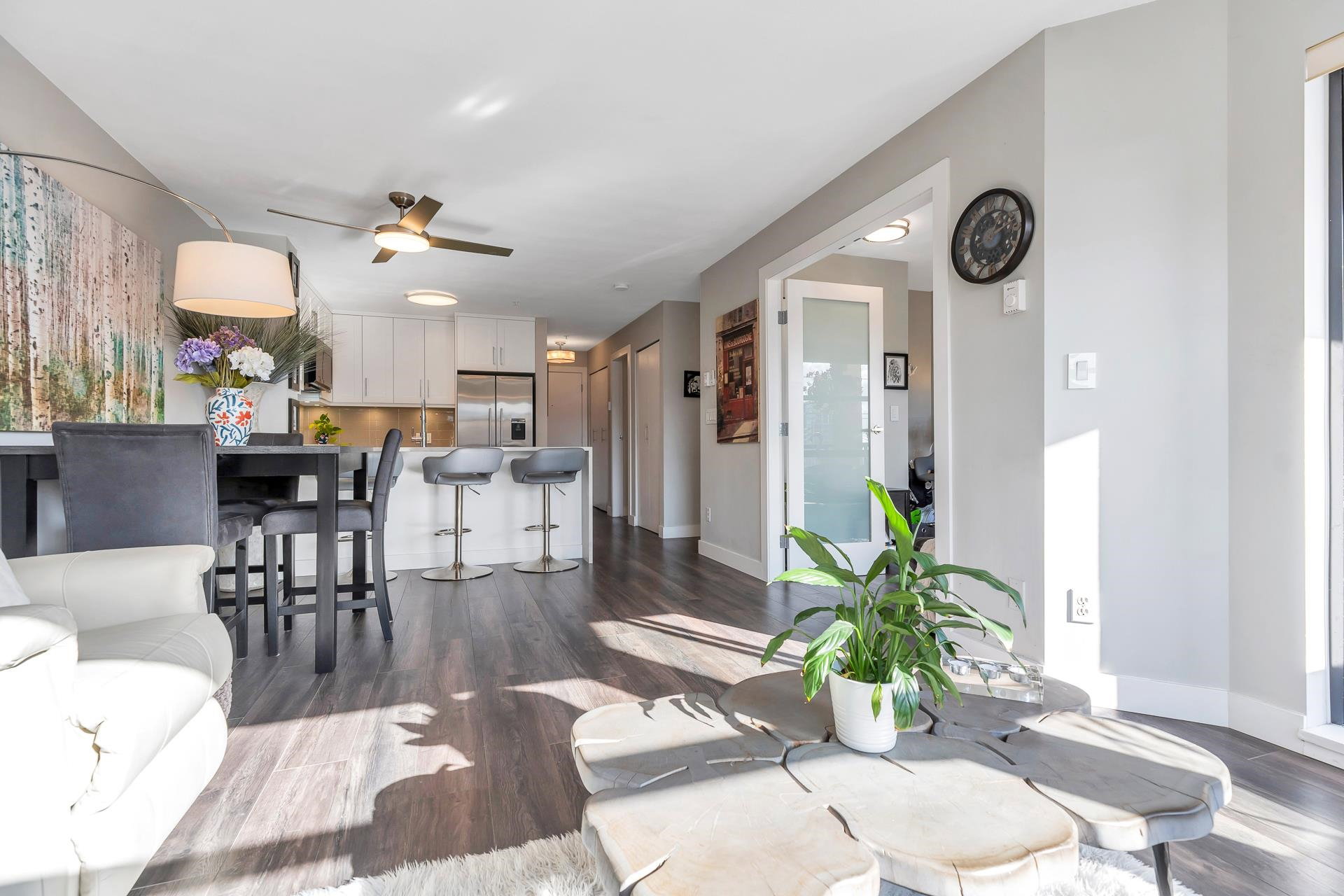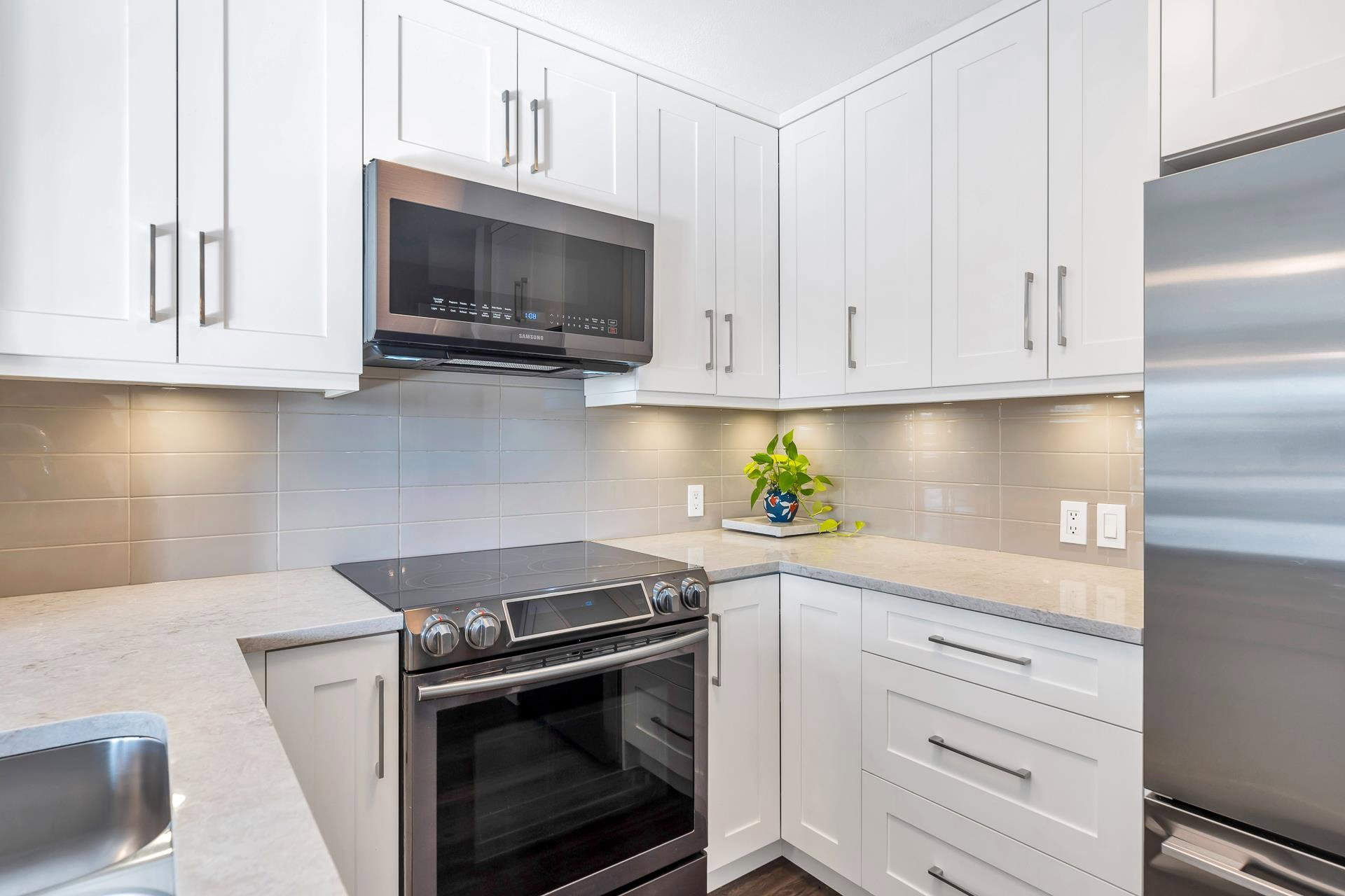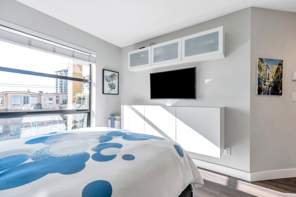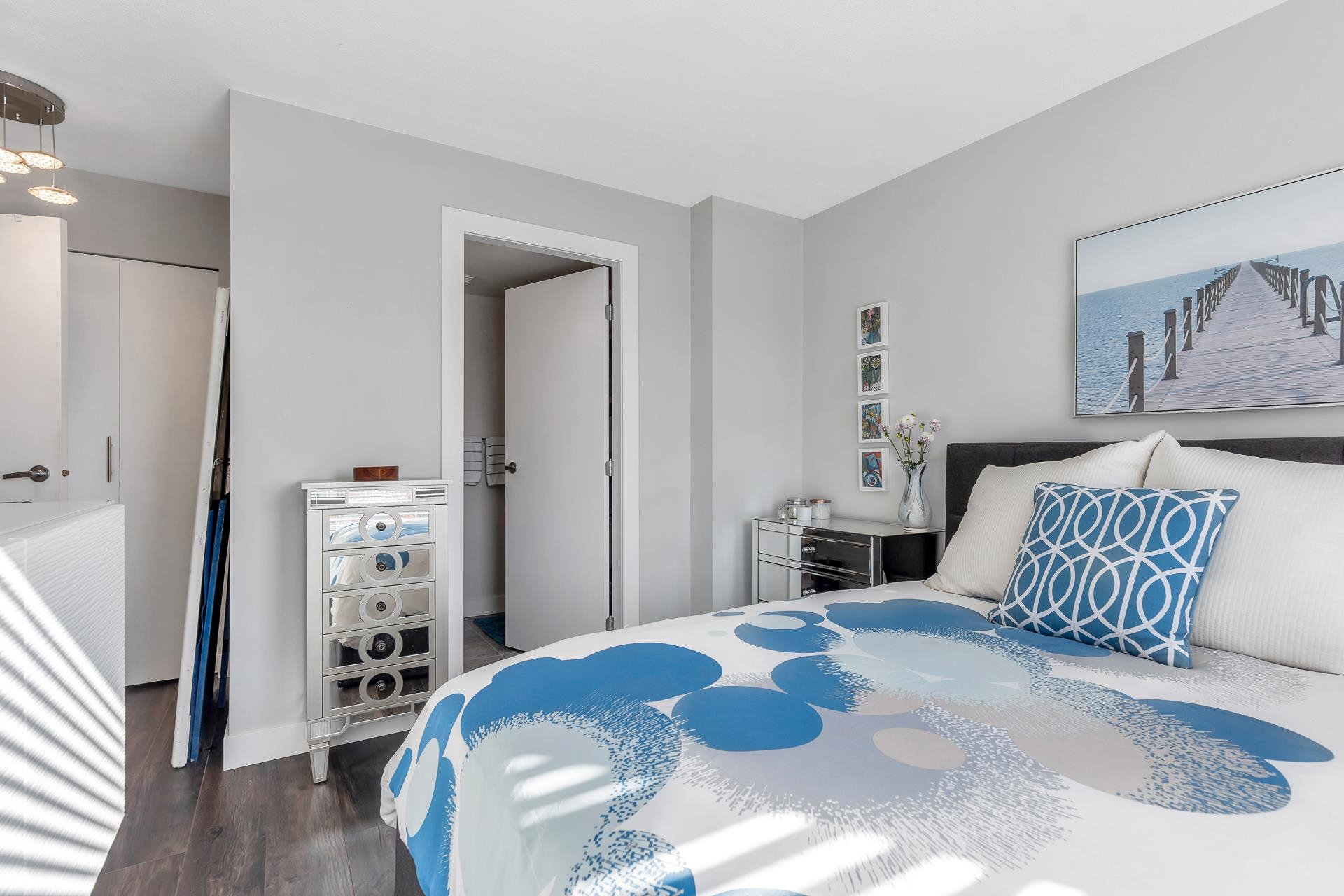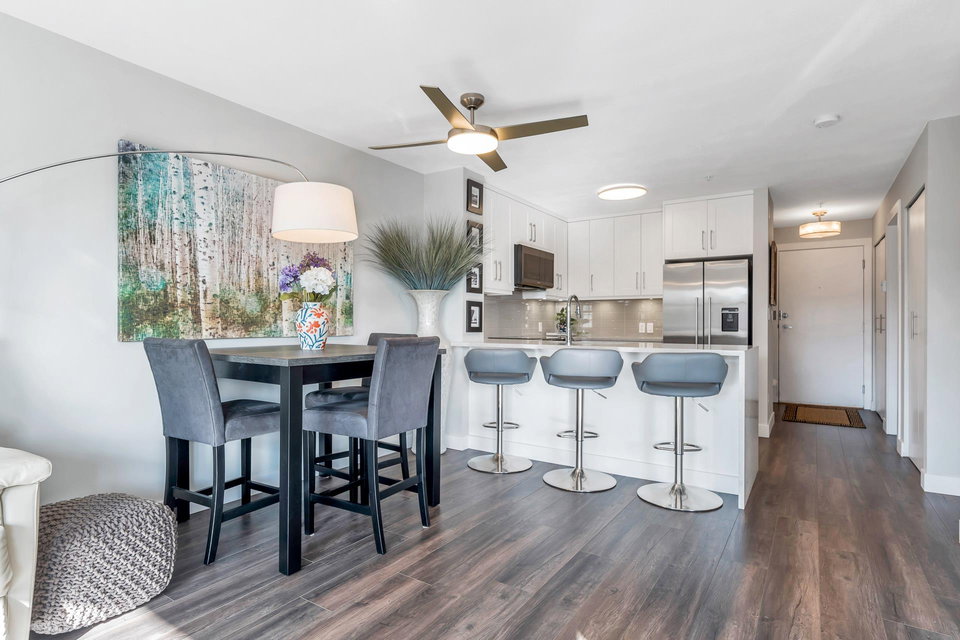 MODERN, BRIGHT AND SPACIOUS LOWER LONSDALE HOME! Move right in! All the space you need is right here in this pleasing and tastefully renovated 2 bedroom, 2 full bathroom + den home. Entertain your guests in the fresh and modern kitchen with waterfall quartz countertop and stainless steel appliances. Bathrooms are beautifully tiled with rainfall shower heads. Cozy up with your family and pets by your gas fireplace in the welcoming open living plan. Enjoy the sunshine with the southern exposure of this home. Centrally located with easy access to Seabus, restaurants, shopping, recreation all within walking distance to name a few benefits of Lower Lonsdale living. This is the home you have been waiting for!