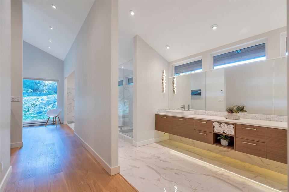 GORGEOUS CUSTOM WESTCOAST CONTEMPORARY HOME EXQUISITELY DESIGNED & REBUILT in 2015 This 4 Bed home in Olde Caulfeild is a unique property in a private setting near Lighthouse Park & Tiddlycove, with an efficiently designed open-plan living space with gourmet kitchen, spacious dining & living rooms where memories are made with friends & family. Soaring ceilings, skylights & oversized windows bring light & create a picture frame for the forest enclave outside. Get outdoor living to the max as you spend warm days/nights on the extensive patios with built-in BBQ & fire pit. Soak away the day in your deep soaker tub in the luxury spa-inspired ensuite in the primary bedroom! 1,000 sqft heated garage/workshop, endless storage, rec/media room are some of the fab features in this incredible space!