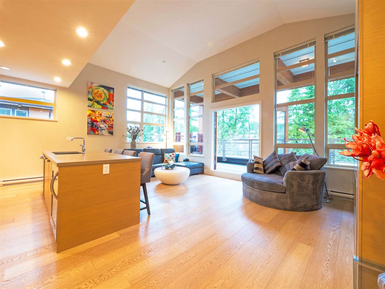 UNDERSTATED ELEGANCE defines this urban contemporary 3 bedroom penthouse located in sought-after Destiny at Raven Woods by award winning Takaya Developments. This modern home boasts a large, private, covered deck with forest views and ample space for entertaining inside and out. The open-plan living space is designed with floor to over-height ceiling windows, beautiful engineered hardwood floors, gas fireplace and stainless steel appliances. Spacious bedrooms, spa-like large master bath defining a well-appointed efficient layout. Lots of extras such as ample storage, 2 side by side parking, 2400 sq ft fitness facility and access to all the North Shore has to offer such as trails, beaches, parks, ski-hill and shopping so close to your doorstep. This is your Destiny! Welcome home!