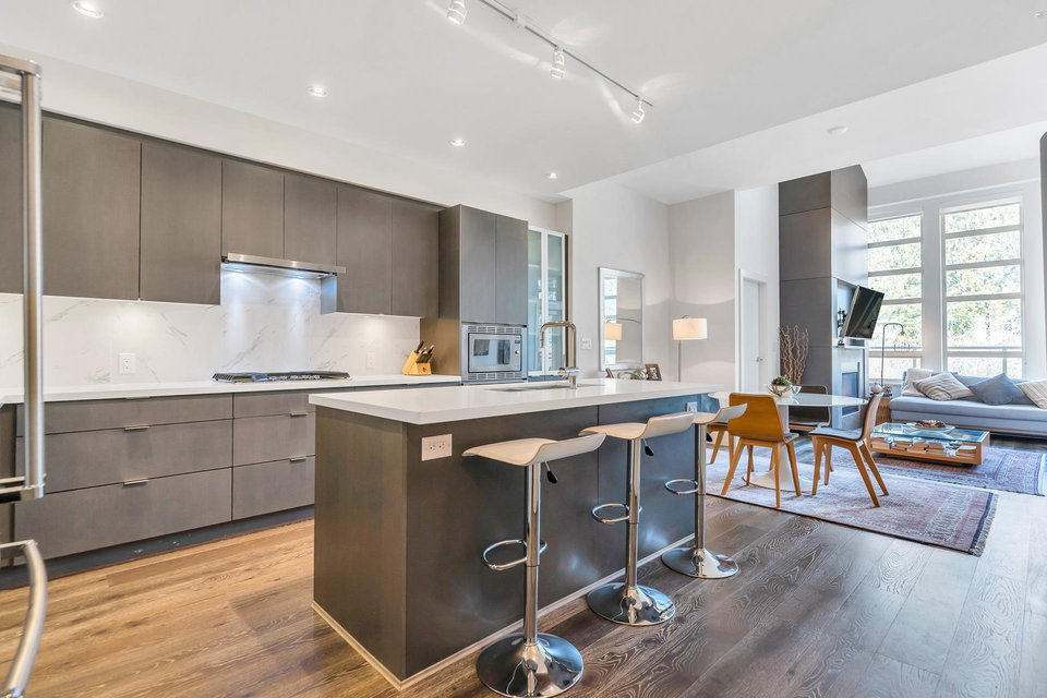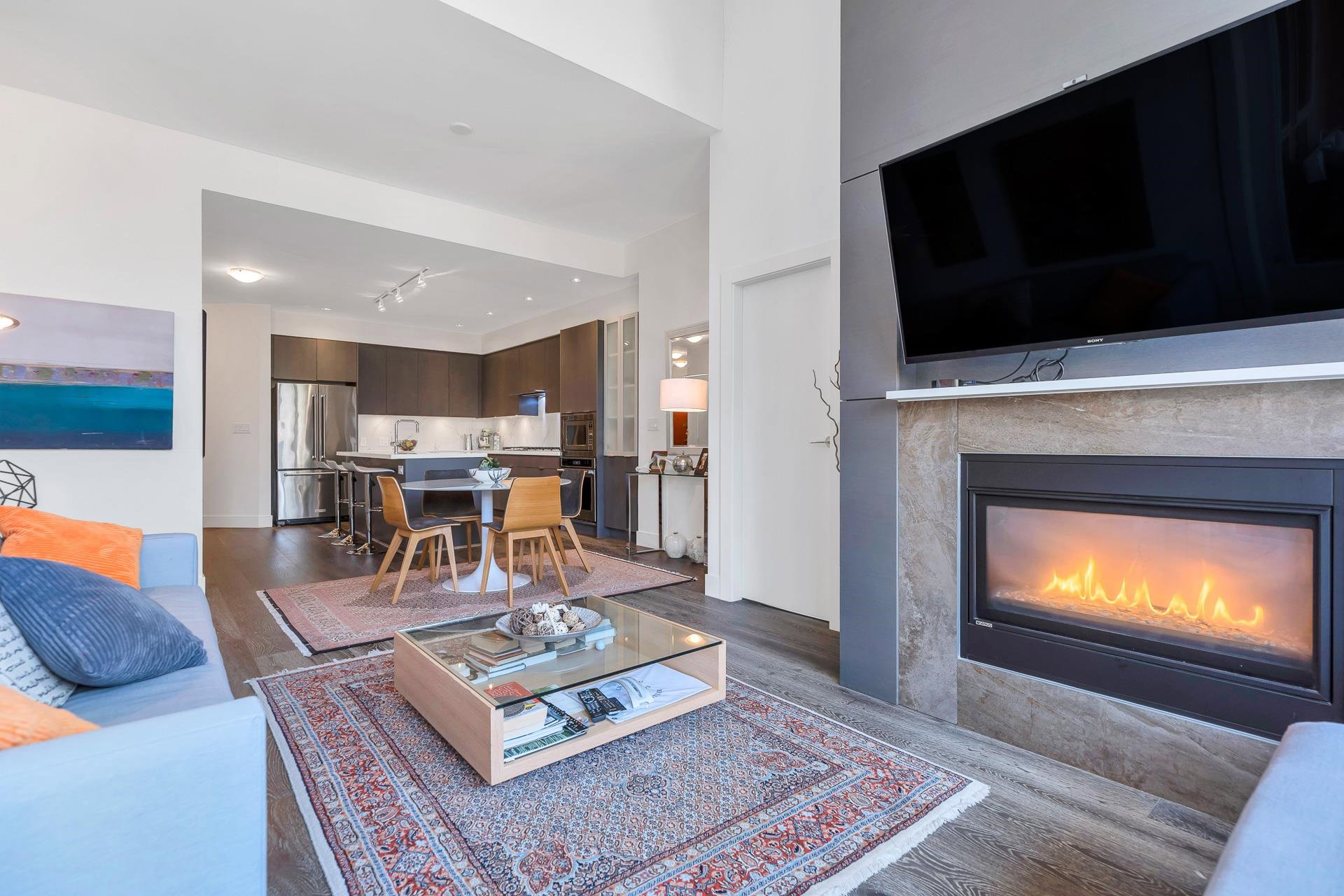 UNPARALLED PENTHOUSE LIVING AT DESTINY 2. Penthouse living at its finest located in the desirable neighbourhood of Raven Woods by award winning Takaya Development. Open-plan layout with the large entertainment-sized kitchen boasts stainless steel appliances, island, gleaming quartz countertops, wine fridge, gas fireplace and engineered hardwood floors. Soaring ceilings and windows provide spaciousness and beautiful natural light. The private patio is also an asset to this move-in ready home. Gym and entertainment amenities and close to all that North Vancouver has to offer: trails, shopping, ski-hill, parks, golf, beaches. This the opportunity to move into the sought-after home and floorplan that Destiny 2 has to offer. Make new memories here with family and friends!